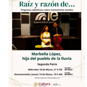 Presentamos la segunda parte dedicada a la poeta indígena Marbella López, originaria del “pueblo de la lluvia”. El programa explora una faceta fundamental de su trabajo: la promoción de la lectura y la revitalización de la lengua tu’un savi (mixteco) entre niñas y niños de su comunidad en Santiago Jicayán, Oaxaca. A través de su testimonio, Marbella comparte la creación de talleres de lectura bilingüe basados en el método de acercamiento afectivo, que prioriza las emociones, la participación voluntaria y el respeto a la identidad cultural. Su iniciativa, surgida desde el proyecto “Semilleros de Arte”, ha impactado a más de cien niños, motivándolos no solo a leer, sino también a reconectar con su lengua materna. El programa también destaca la organización comunitaria que permitió la creación de una biblioteca infantil, así como la formación de jóvenes promotores de lectura que darán continuidad al proyecto. La emisión se enriquece con la lectura de poemas de la autora en tu’un savi y español, acompañados por el chelo de Arturo Mendoza, así como una reflexión sobre el papel de la música en las luchas culturales contemporáneas.. Los puentes musicales son del maestro de la música de la Costa Chica, Higinio Peláez.